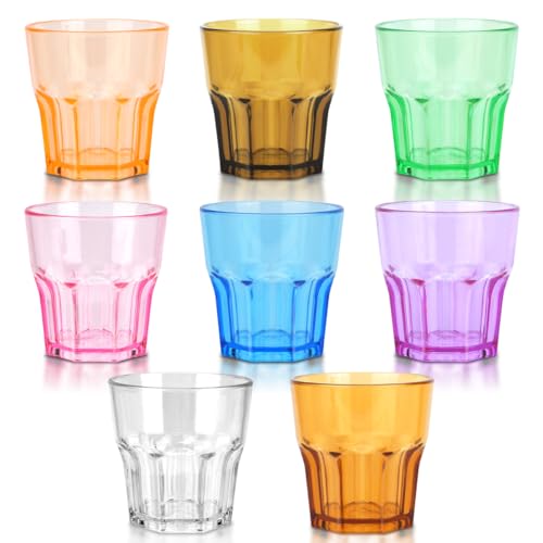 8 stycken plastmuggar, färgglada, barnmugg-plast, 120 ml högkvalitativa dricksglas i plast, 160 ml återanvändbara och diskmaskinssäkra dryckesbägare för fest cocktailglas (8 st färger)