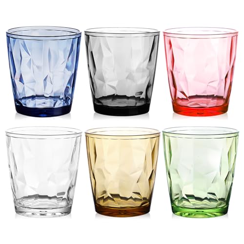 BYZESTY Vattenglas av plast, 6 stycken plastmuggar färgglada, stapelbara vattenglas-set, återanvändbara plastmuggar, drickkoppar, färgglada dricksglas set för hem, fest, kontor, camping (300 ml)