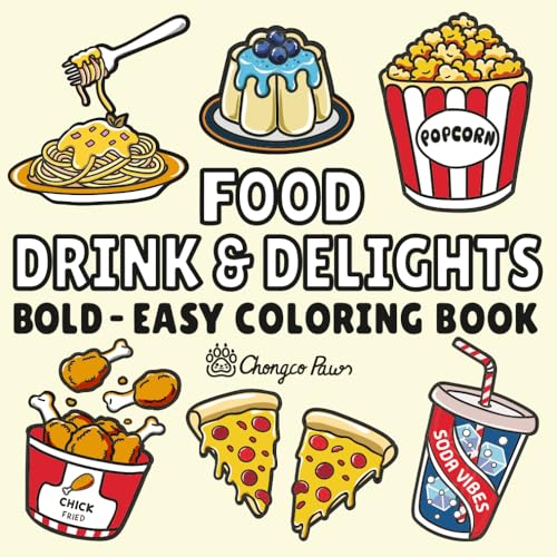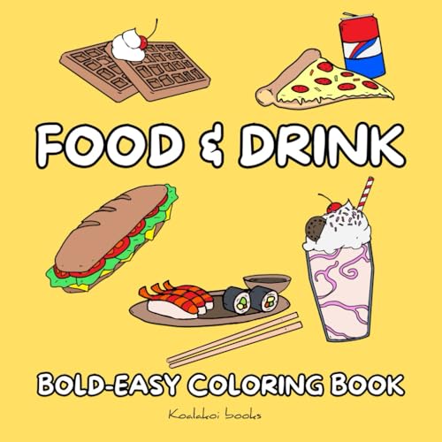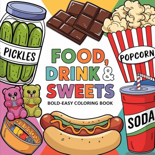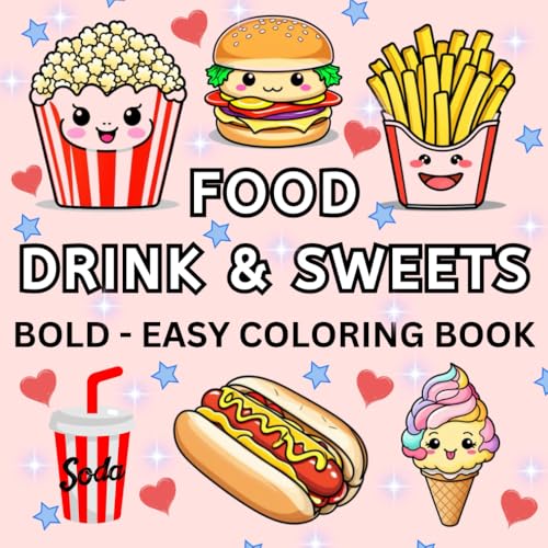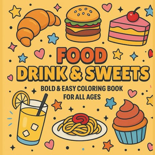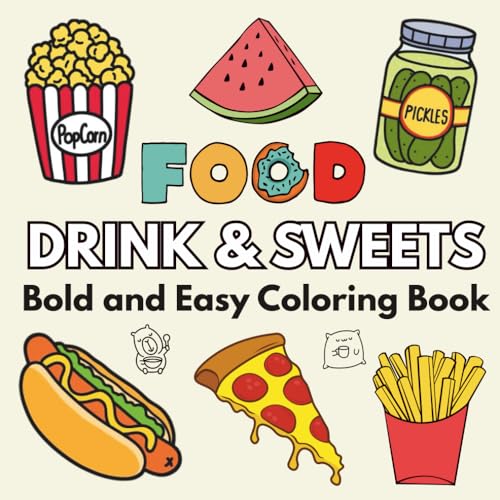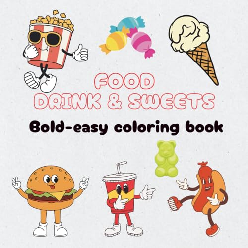 Food Drink & Sweets: Coloring Book with Big and Simple Designs for Kids and Adults Showcasing a Variety of Sweets, Foods, and Drinks (Bold and Easy Coloring)