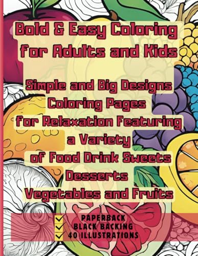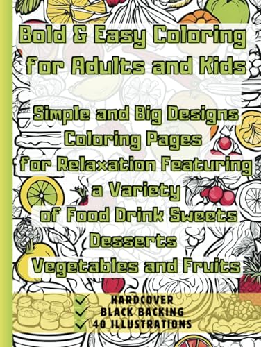 Bold & Easy Coloring for Adults and Kids: Simple and Big Designs Coloring Pages for Relaxation Featuring a Variety of Food Drink Sweets Desserts Vegetables and Fruits