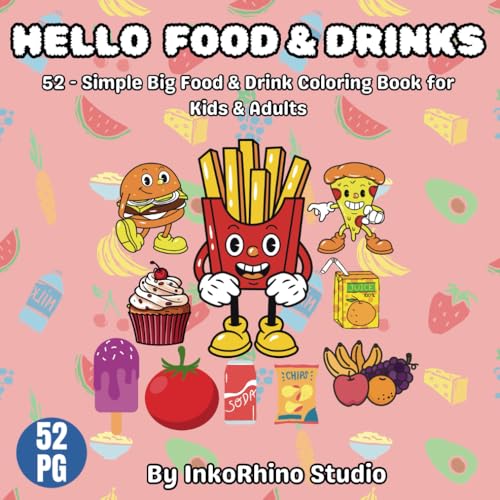 Hello Food & Drinks: 52 - Simple Big Food & Drink Coloring Book for Kids & Adults