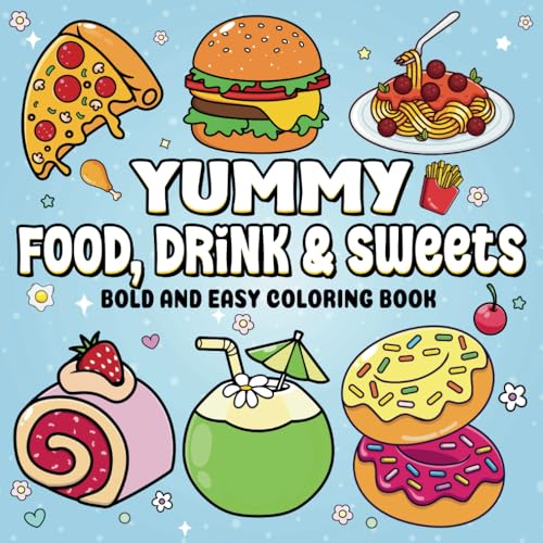 Yummy Food, Drink and Sweets: Bold and Easy Coloring Book for Adults, Teens, and Kids
