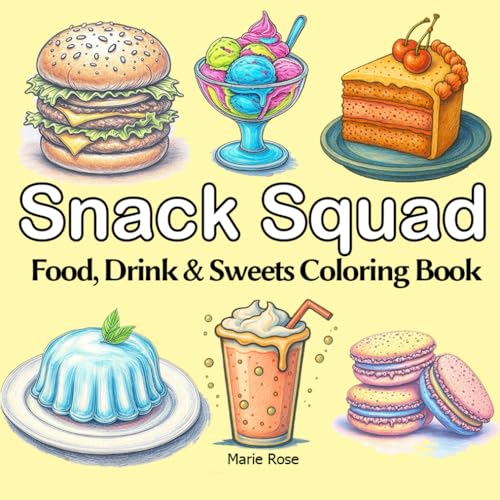 Snack Squad: Food, Drink & Sweets Coloring Book for Adults and Kids, Bold and Easy, Simple and Large Designs for Relaxation Including a Variety of Foods, Drinks, Desserts