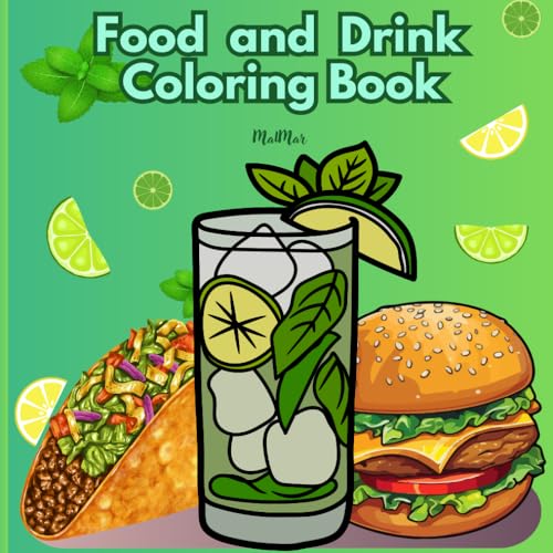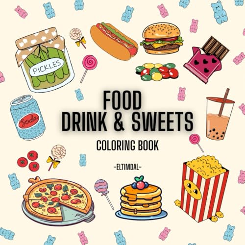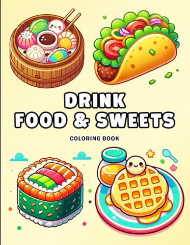 Drink Food and Sweets Coloring Book for Kids and Adults: 60 Delicious Designs Including Tacos, Milkshakes, Candy, Fruit and More – Perfect for All Ages