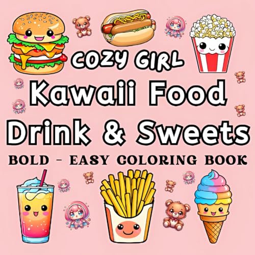 Cozy Girl Kawaii Food Drink & Sweets: Simple Bold and Easy Coloring Book for Adults and Kids
