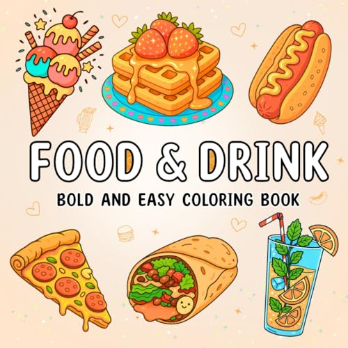 Food Drink & Delights: Relaxing Coloring Book for Adults and Kids Featuring Bold and Easy Designs of Adorable Foods, Refreshing Drinks, and Sweet ... Surprises for Mindful Joy and Stress Relief!