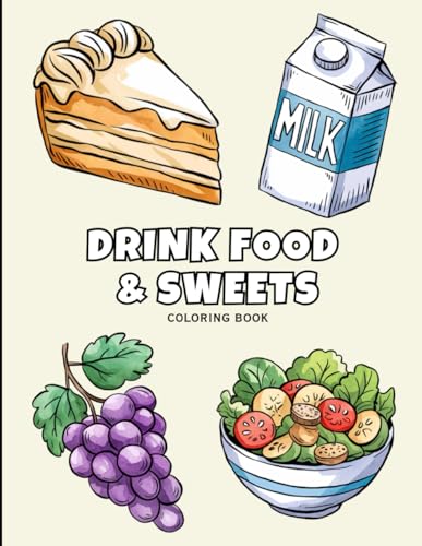 Drink Food & Sweets: Coloring Book for kids and Adults, Simple and Big Designs for Relaxation Featuring a Variety of Desserts and Fruits, Foods, Drinks.