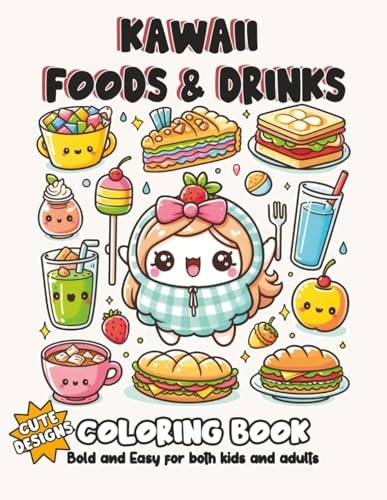 Food, Drink & Sweets – A Kawaii Coloring Book for Kids, Teens & Adults: Stress Relief Coloring Book with Bold and Easy Pages – Simple, Big Kawaii Designs for Kids, Teens & Adults
