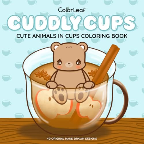 Cuddly Cups: Cute Coloring Book for Adults and Kids Featuring Cute Animals in Drink Cups for Stress Relief and Creativity