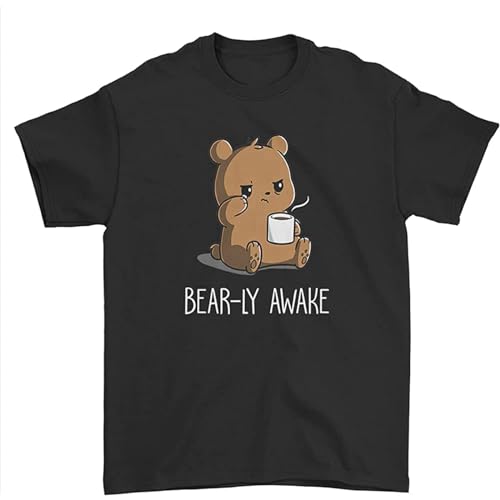 Bearly Awake T-Shirt Funny Rude Joke Coffee Drink Men's Women's Kid's tee O-Neck Unisex Short Sleeve T-Shirt Black XXXL