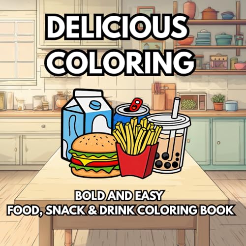 Delicious Coloring: Bold and Easy Food, Snack & Drink Coloring Book | For Kids and Adults