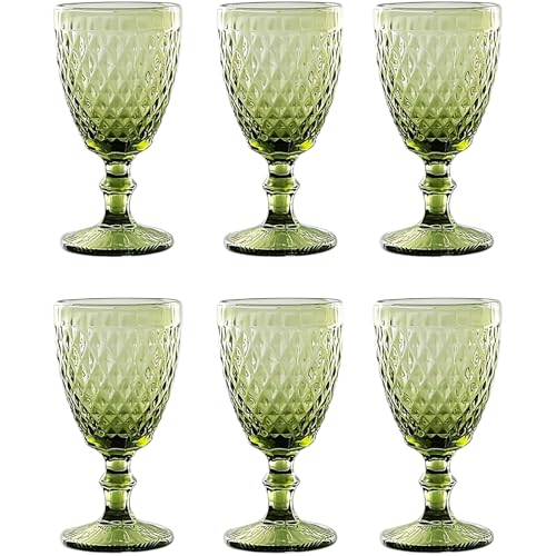 Set med 6 färgglada vintage vinglas med diamantmönster - lång drink, präglad cocktail - glasglas för vin och vatten