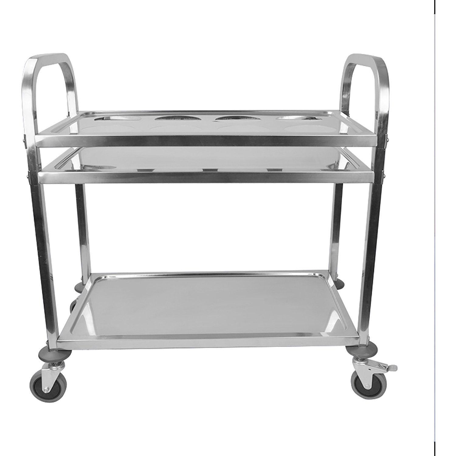 Serveringsvagn/Drinkvagn för flaskor & behållare Rostfritt stål 2 hyllplan varav 1 med flaskram Fyrkantiga rör 850x450x900mm | Adexa SCT2A