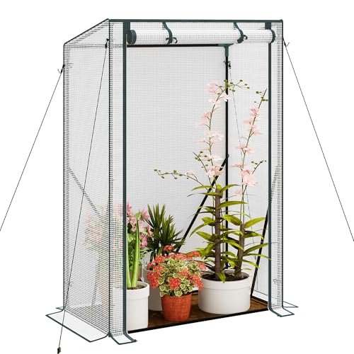 WOLTU Folieväxthus, tomatväxthus, drivhus, trädgårdshus, drivbädd, tomathus, grönsaker, växthus, övervintringstält för växter, vit, 50 x 100 x 136/150 cm