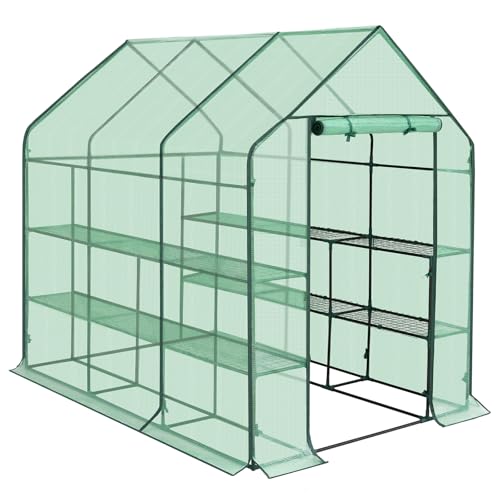 WOLTU Folieväxthus, tomatväxthus, drivhus, växthus, trädgårdshus, drivbädd, tomathus, för grönsaker, övervintringstält för plantor, grönt, 143 x 215 x 195 cm
