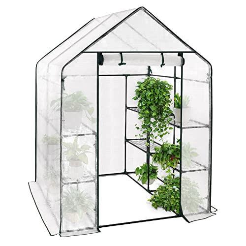 WOLTU Folieväxthus, tomatväxthus, drivhus, växthus, trädgårdshus, drivbädd, tomathus, för grönsaker, övervintringstält för plantor, vitt, 143 x 215 x 195 cm