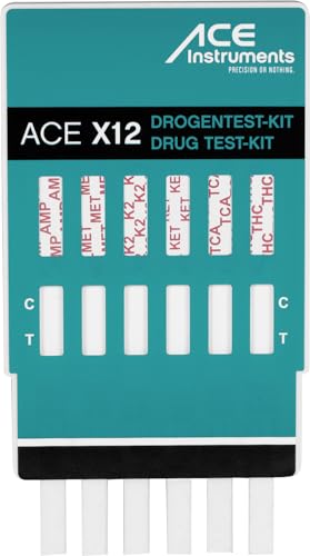 ACE X12 Drogtest - 5x urinprov för 12 olika drogtyper - upptäcker marijuana och cannabis, meth, heroin, kokain och mycket mer.