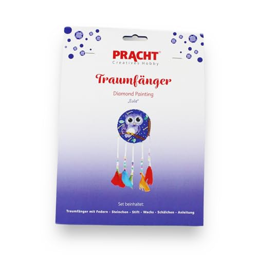 Pracht Creatives Hobby 6045-15011 diamant, ugglamönster, hantverkssats för att göra en drömfångare med glittrande stenar, för barn från 5 år, plast, flerfärgad, en storlek