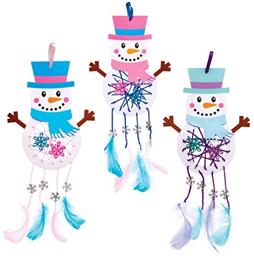 Baker Ross AT169 snögubbe drömfångare pysselset (4 stycken) julpyssel barn, sorterade (1-pack)
