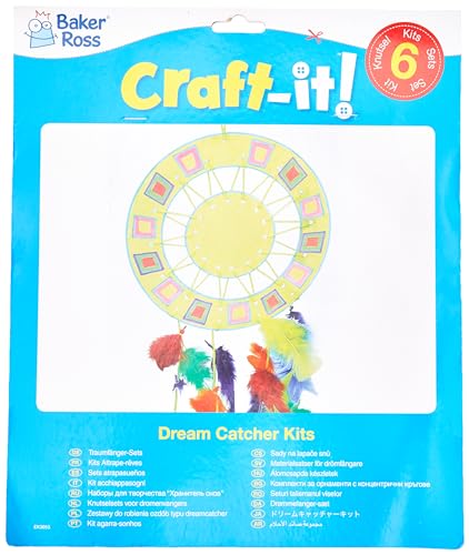 Baker Ross EK3053 Ross pysselset – drömfångare – av kartong och med fjädrar – för pyssel och upphängning för barn – lämplig som fönsterdekoration – 6 stycken