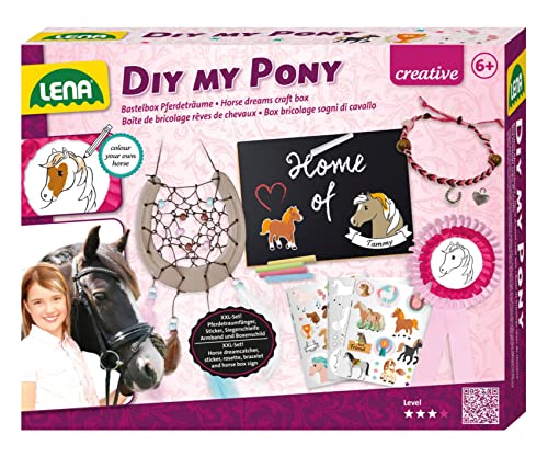 Lena 42705 – XXL DIY-pysselset, set för hästskor, drömfångare, hästarmband, märke, tavla med krita och klistermärkesset, gör det själv kreativt set för barn från 6 år