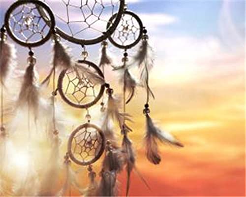 Diamantmålningsset, bild med motiv drömfångare och tillbehör, storlek ca 35 x 25 cm, pysselset för målning med glitterstenar för barn från 5 år