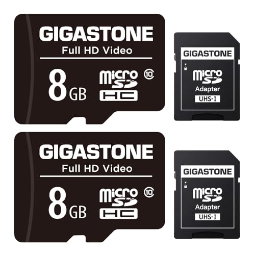 GIGASTONE 8 GB microSDHC minneskort 2-pack SD-adapter, för actionkamera, GoPro, drönare och surfplatta, läshastighet upp till 85 MB/s, Full HD-videoinspelning, micro SD-kort UHS-I klass 10 U1