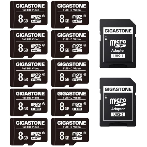 GIGASTONE 8 GB 10-pack Micro SD-kort, Full HD-video, GoPro övervakningskamera actionkamera sport kamera drönare, 80 MB/s Micro SDHC UHS-I U1 C10 klass 10