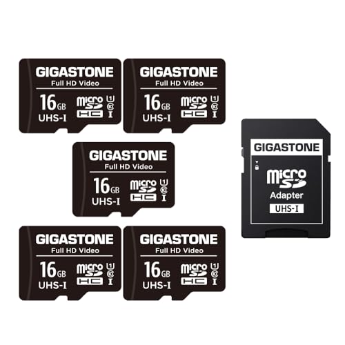Gigastone Micro SD-kort 16 GB 5-pack med 1 x SD-adapter + 2 x minifodral, FHD-video, övervakningskamera actionkamera drönare, 85 MB/s Micro SDXC UHS-I U1 klass 10