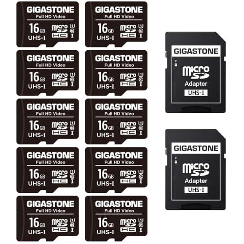 GIGASTONE 16 GB Micro SD-kort 10-pack, FHD-video, övervakningskamera actionkamera drönare, 85 MB/s Micro SDHC UHS-I U1 klass 10, med adaptrar