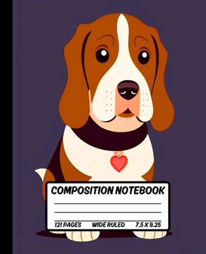 Cute Basset Hound Composition Notebook Wide Ruled: A Sweet, Gentle Basset Hound With Droopy Ears and Big Eyes