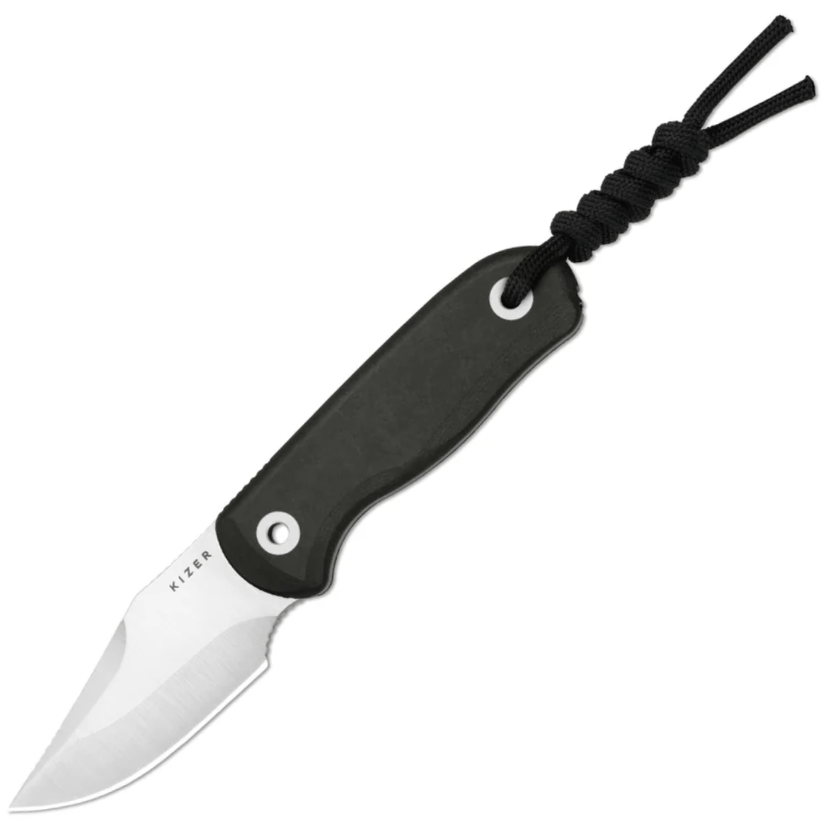 Kizer Drop Bear Fix Campingkniv, 6,52 cm D2 Satinblad Kniv med Svart G10 Handtag, Utomhus Full Tang Jakt Överlevnadsknivar med Justerbar Kydex Slida, 1094M2