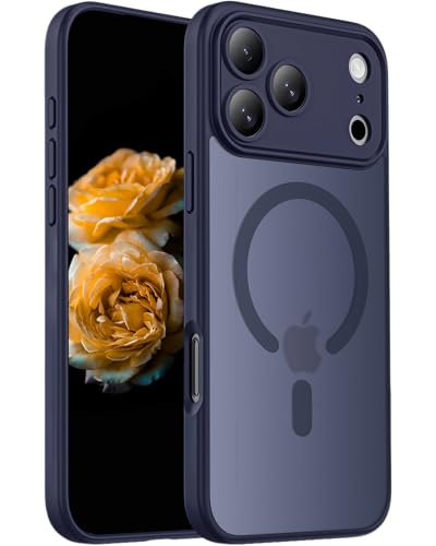 Magnetic Case Compatible with iPhone 17 Pro Max, Upgraded [Full Camera Guard] [Military Drop Protection] Protective Shockproof Translucent Matte Women Man Girl Phone Cover 6,9 Tum - Blå