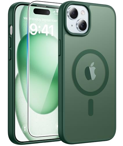 FNTCASE for iPhone 15 Case: for iPhone 14 & iPhone 13 Case | Magnetic Frosted Translucent Slim Shockproof Cell Phone Cover | Military Grade Protection Drop Proof Tough Protective Cases - Green