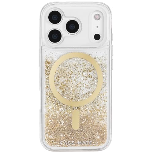 Case-Mate iPhone 17 Pro Case [Compatible with MagSafe] - Liquid Glitter Phone Case with 12ft Drop Protection - Premium Magnetic Cover for iPhone 17 Pro - Gold Waterfall