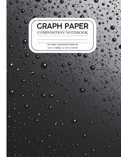 Graph Paper Composition Notebook – Quad Ruled 4x4 – 100 Pages – 8.5 x 11 in: Professional Graphing Notebook with Black Water Droplet Cover – Ideal for Math, Science, Drawing, and Design