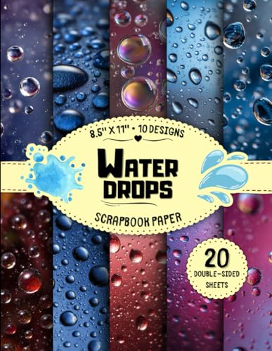 Water Drops Scrapbook Paper: 10 Realistic Droplet Designs, 20 Double-Sided Sheets for Crafting Projects, Card Making, Origami, Junk Journals & More | 8.5" x 11"