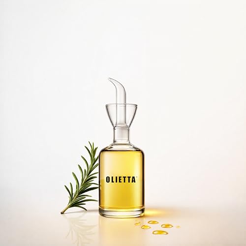 Olietta Oljedoserare i Borosilikatglas – 250 ml droppfri olivoljeflaska med läckagesäker pip för olja och vinäger – lätt att rengöra