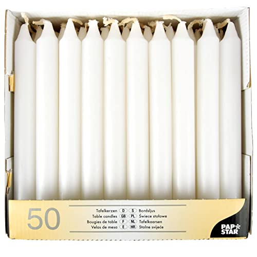 PAPSTAR 20 cm höga vita bord hushållsljus 50 st storpack | Europeisk premium kvalitet oparfymerad droppfri, rökfri middag ljusstake - tillverkad i Tyskland