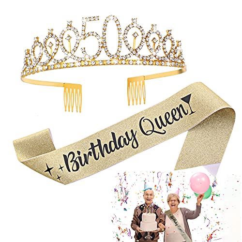 Aster 50-årsdag drottning band födelsedag tiara-kit 50-årsdag band strass krona 50-åriga födelsedagspresenter till kvinnor fest souvenir