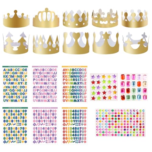 20 stycken kronor pyssel barns födelsedag papper krona festhattar födelsedagskrona med 3 ark strass-klistermärken och 6 ark alfanumeriska klistermärken för prinsessan prins drottning födelsedagsfest