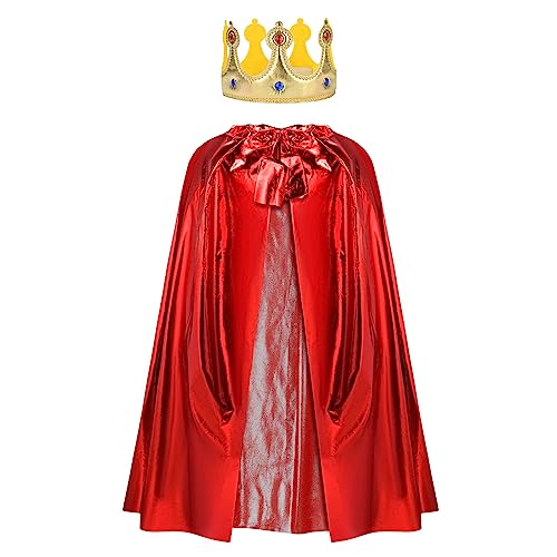 AOOWU Kunglig kappa för barn, kungsdräkt med krona, röd sammet, kunglig rock för pojkar, flickor, medeltida prins, kung, drottning, cape för halloween, maskeraddräkt, cosplay, fest, karneval, 80 cm