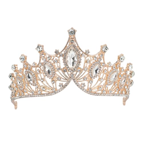 Bröllopstiara i roséguld, brud strass prinsessa tiara för kvinnor bal drottning krona brud bröllopskrona, Juldräkt, dekorera, barock bröllop, bal, festtåg, fest