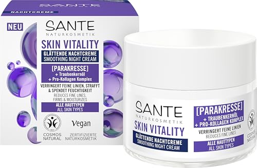 SANTE Naturkosmetik Face Skin Vitality nattkräm, regenererande fuktkräm med parakress, druvkärneolja & Pro-kollagen, anti-rynk-nattvård för alla hudtyper, 50 ml