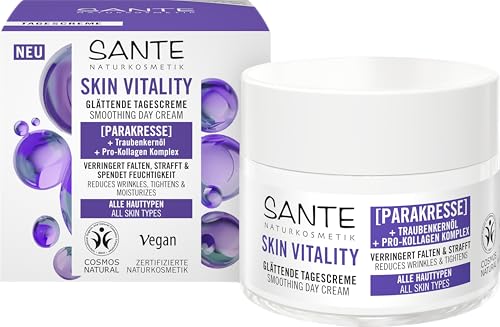 SANTE Naturkosmetik Face Skin Vitality Dagkräm, vitaliserande fuktkräm med parakress, druvkärneolja & Pro-kollagen, anti-aging-kräm för alla hudtyper, 50 ml