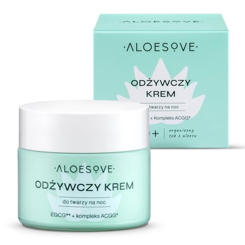 ALOESOVE närande nattkräm för ansiktet 50 ml – ansiktskräm för alla hudtyper – intensiv fuktkräm med druvkärneolja, nattljusolja och jojobaolja – vegan, anti-aging