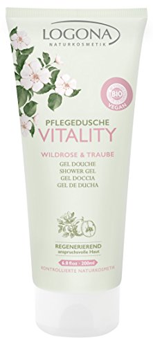 LOGONA Naturkosmetik vård dusch vitality, exklusiv kombination av druvkärneolja och vildrosextrakt, vegan, 200 ml