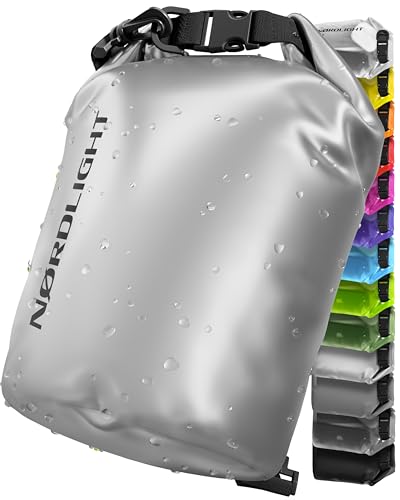 Nordlight Dry Bag och vattentät väska - (20L, Metallic) Vattentät packväska med rullstängning och axelrem | Simning, strand, kanotpaddling, stå upp paddling, dykning