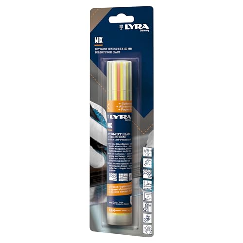 LYRA DRY GIANT MIX reservledningar rund box fylld med 12 stycken blandade färger, 2 x 5 x 150 mm, för nästan alla ytor, i blister