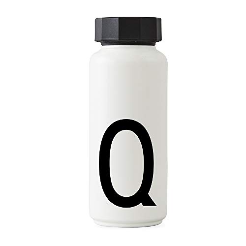 Designbokstäver personlig vit termosflaska i rostfritt stål för varma och kalla drycker, isolerad dryckesflaska när du är på språng för arbete, skola, sport och gym – Q